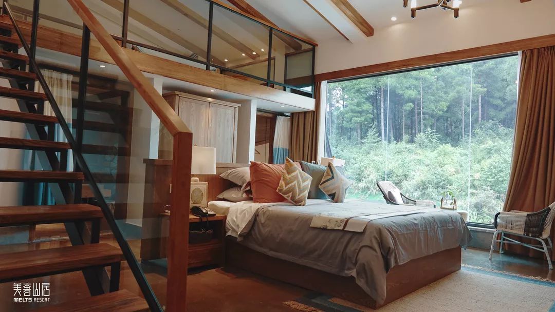 美奢山居總經(jīng)理張胥告訴我,美奢山居由重慶永緣(實(shí)業(yè))集團(tuán)斥資4000余萬元打造,總建筑面積約5000平方米,是集餐飲、住宿、會(huì)務(wù)、休閑娛樂于一體的民宿。共有31間客房,匠心獨(dú)運(yùn)地設(shè)有親子房、榻榻米房、山景房、大床房、雙人房等多種房型,定能滿足旅居者的多樣需求,給其帶來別樣的居住體驗(yàn)。