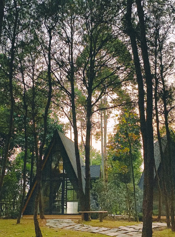 這里一共有五間獨(dú)棟的木屋🏡,每個(gè)房間都有大大的落地玻璃立面,還有我喜歡的小閣樓,上去就可以通過天窗看到外面的風(fēng)景,晚上把木屋的燈打開,森林里亮著獨(dú)有的暖色燈光,簡直是圣誕小屋的即視感,特別溫暖。