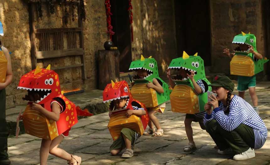 01紙箱恐龍1、2、3、木頭人,是小時(shí)候常玩的游戲,此山居把這個(gè)游戲做了一個(gè)升級(jí),換上恐龍服裝;在私密的院子里,再大聲的歡笑都不會(huì)影響周圍的人。