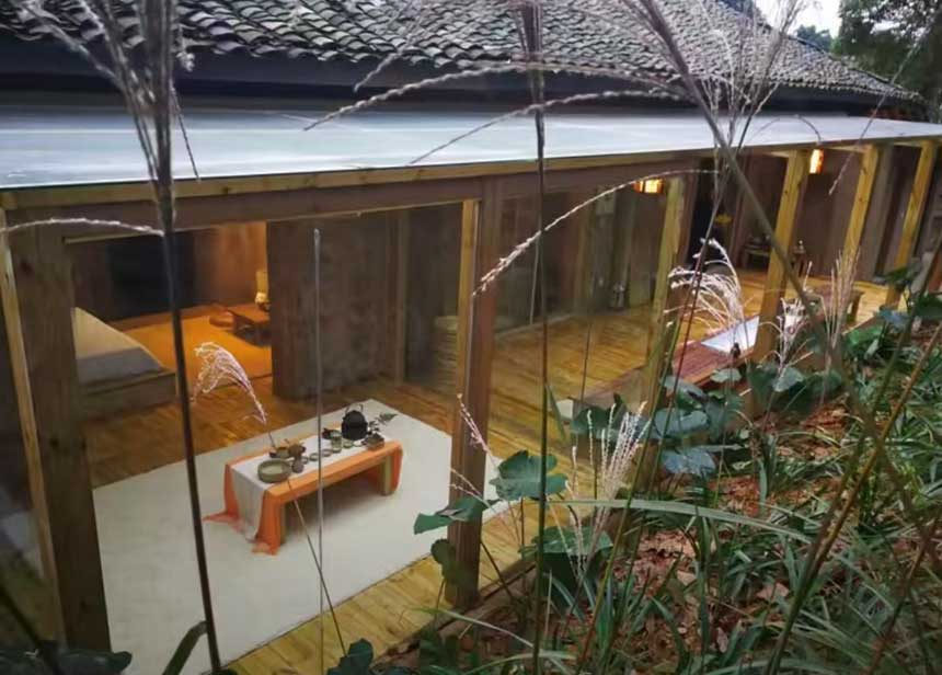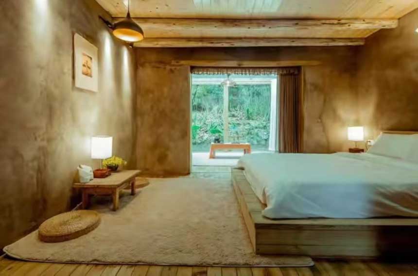 此山居,“簡于形,精于心”,院子不大,以木結(jié)構(gòu)、石板院壩、夯土墻、老瓦片為核心,修舊如舊,完美的還原出了大家記憶中80年代的老院子模樣。