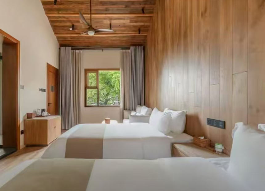 風(fēng)景區(qū)核心,平均海拔約720米,占地600余畝,山莊內(nèi)植被豐富,森林茂密,清水湖碧波蕩漾,PM2.5濃度處于40微克/立方厘米以下,達到優(yōu)級標(biāo)準(zhǔn),且負(fù)氧離子含量高,被譽為“天然氧吧”。2015年重報怡家人山莊已被市體育局命名為“