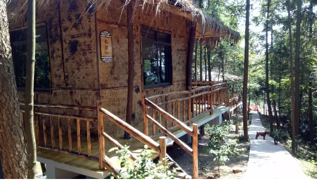 一座座樹屋掩映在樹林中,