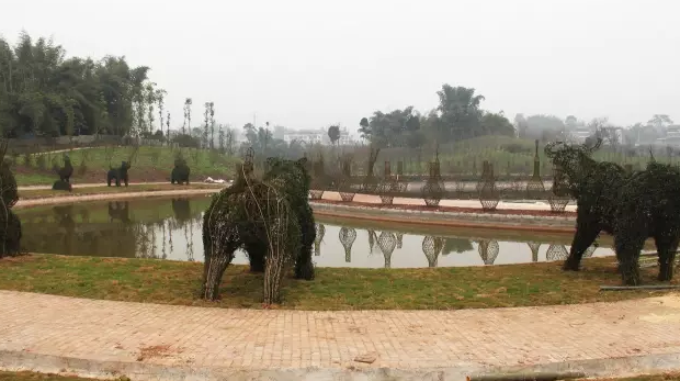 在這里,海棠樹(shù)不只是簡(jiǎn)單成片栽種,還通過(guò)人工編織,栽種出涼亭、長(zhǎng)廊、十二生肖等藝術(shù)造型;環(huán)湖種植的桃樹(shù),樹(shù)形美觀而老老蒼蒼,別有一番韻味。