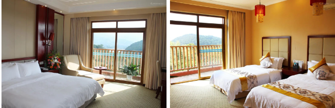 大龍灣度假酒店:大足境內(nèi)唯一金葉級(jí)綠色飯店,分設(shè)1號(hào)樓、2號(hào)樓和3號(hào)樓。1號(hào)樓擁有風(fēng)格各異的湖景、山景房62間/套;2號(hào)樓擁有別具一格的湖景房54間;3號(hào)樓擁有標(biāo)準(zhǔn)間和不同規(guī)格的多人間共計(jì)34間。房間清新雅致,別具一格;輕松優(yōu)雅的高檔餐廳,極具特色的觀景茶樓,以及各式泉浴讓您擁有一個(gè)舒適、休閑的假期。