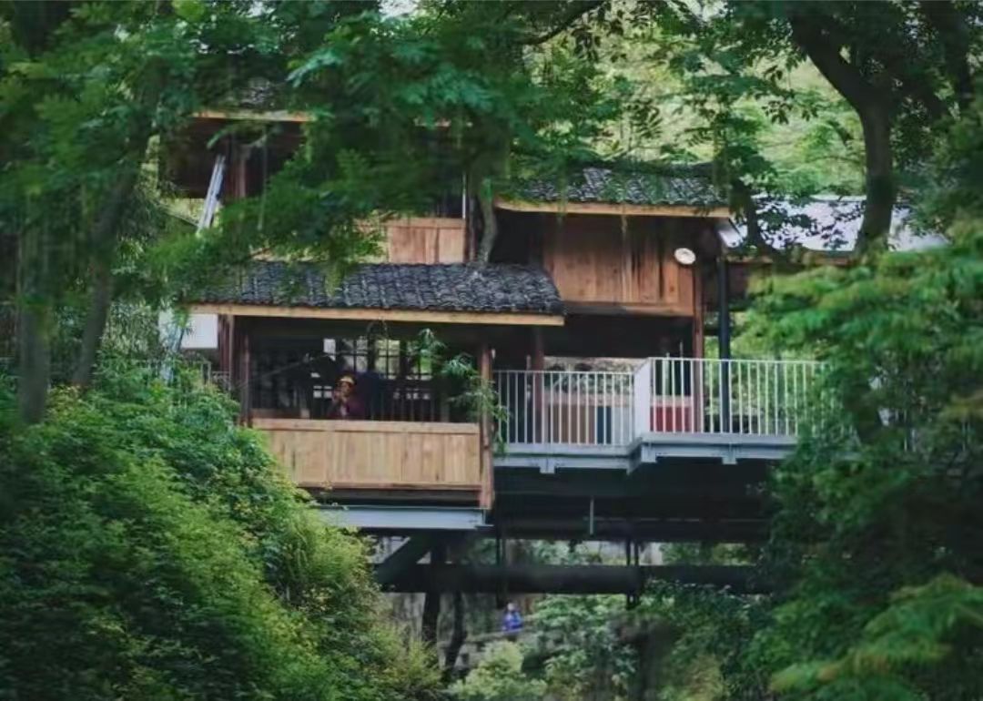從北碚城區(qū)出發(fā),5公里便能到達(dá)?偟膩砜矗饎偙疁厝勐漤(xiàng)利用了村落的自然資源及文化資源,修建了特色溫泉、足浴、SPA與養(yǎng)生及民宿,讓游客置身于傳統(tǒng)村落中,卻有現(xiàn)代元素的體驗(yàn)。