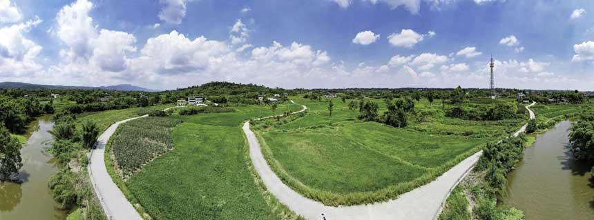 正興鎮(zhèn)河堰村煙雨朦朧、鳥聲清脆,天河水庫吹來悠悠涼風,漫步在草木蒼翠、花香彌漫的人行便道上,近處的稻田、荷塘阡陌交錯,遠處的燃燈山翠屏疊嶂。