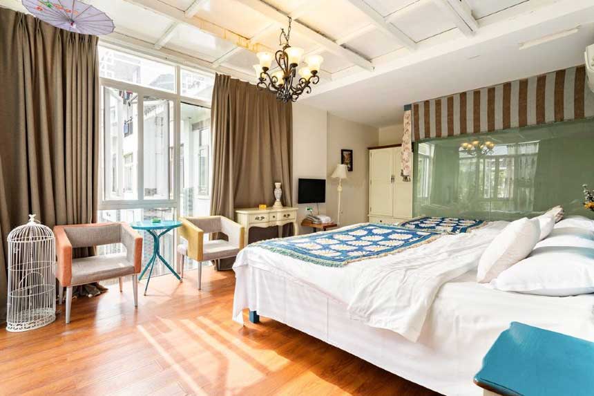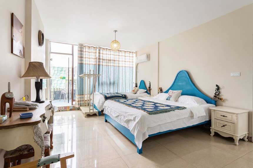 溪地.悠居 度假小院:地中海與歐式混搭風(fēng)格,前后院超美。舒適大小床,設(shè)施完備,有空調(diào)、衣柜、電視、免費(fèi) WiFi 和 24 小時(shí)熱水。還提供廚房廚具,院子旁有原生態(tài)菜地可采摘,有雞鵝,小區(qū)花溪河環(huán)繞,附近有魚塘能釣魚。