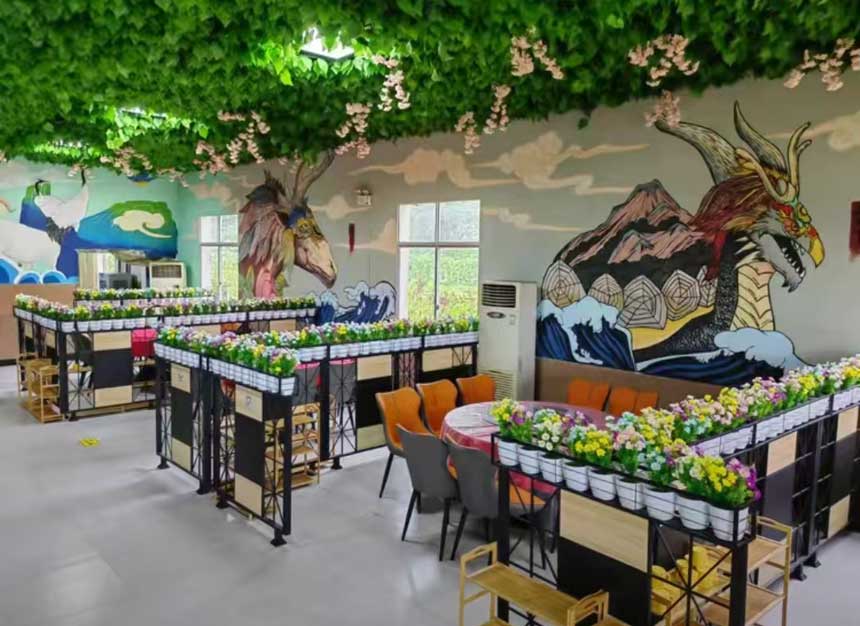 獨棟別墅的墻壁上,五彩斑斕的畫染讓人眼前一亮,整個園區(qū)充滿了創(chuàng)意和活力。你可以在這里享受悠閑的下午茶,品嘗精致的小點心,或者和朋友們一起聚餐,享受美食的快樂。