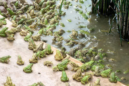 虎紋蛙(青蛙)又名田雞,其肉質細嫩,口味好,蛋白質含量高,脂肪少,糖分少,具有清熱解毒,消腫止痛的功效,在民間很多地方都稱之為滋補珍品。