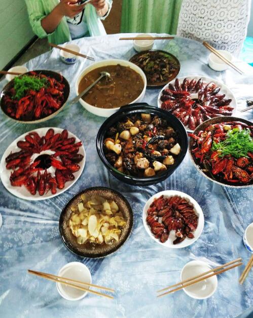 為保證質(zhì)量,用餐需提前一天預(yù)訂,根據(jù)預(yù)定量捕撈新鮮小龍蝦。