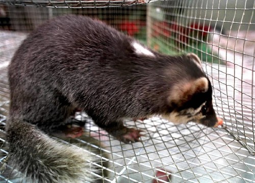 果子貍也叫花面貍、白鼻狗、白面、花面棕櫚貓等,果子貍屬靈貓科(Paguma)。該屬只有一個物種,與本科其他物種同屬于食肉動物中的原始類群。果子貍是珍貴的毛皮和肉用的野生動物。般體長48~50公分,尾長37~41公分;體重3600~5000克。體色為黃灰褐色,頭部色較黑,由額頭至鼻梁有一條明顯的四帶,眼下及耳下具白斑,背部體毛灰棕色。后頭、肩、四肢末端及尾巴后半部為黑色,四肢短壯,各具五趾。趾端有爪,爪稍有伸縮性;尾長,約為體長的三分之二。生活在山林中,吃果實、谷物、小鳥等,屬雜食性動物。毛皮可用來制衣帽