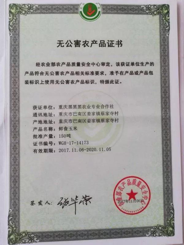 該黑玉米取得了國家農業(yè)部無公害農產品認證