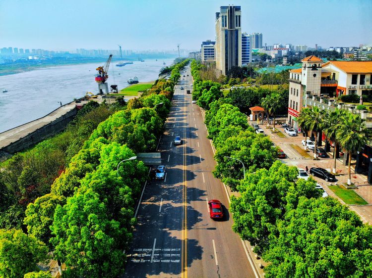 重慶巴南:香樟樹吐新綠,巴濱路沿線一片生機(jī)盎然