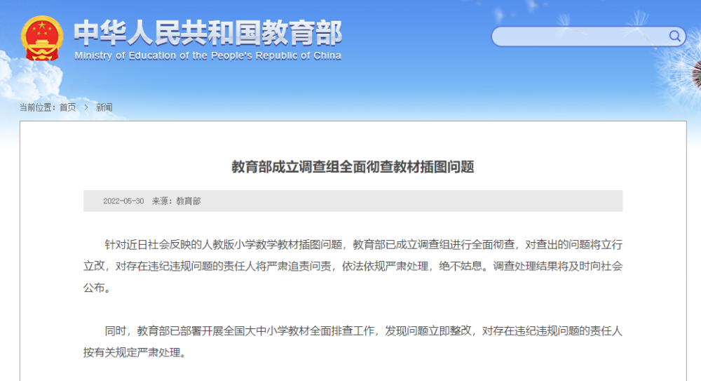 教育部成立調(diào)查組全面徹查教材插圖問題