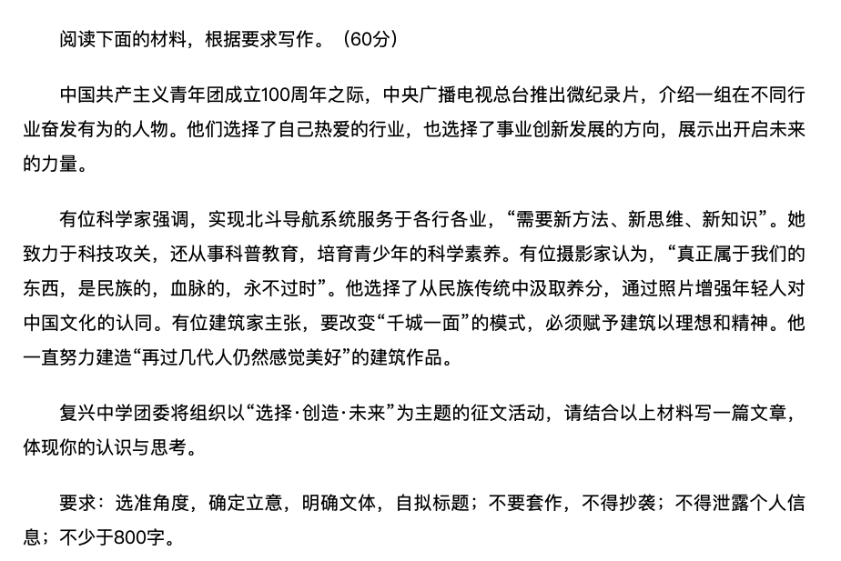 2022重慶高考作文題目:選擇·創(chuàng)造·未來
