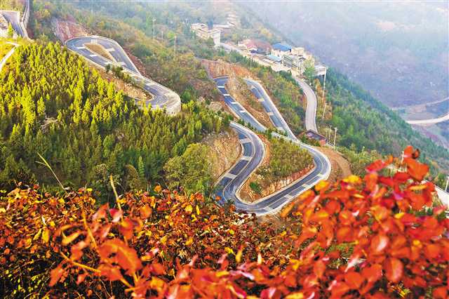 巫山縣圍繞全域旅游建設(shè),依托“巫山紅葉”這一“金字招牌”,持續(xù)新建、改造旅游公路,提質(zhì)鄉(xiāng)村旅游,推進(jìn)鄉(xiāng)村振興。圖為11月15日,巫山縣城通往兩坪鄉(xiāng)的旅游公路旁,紅葉絢爛。(資料圖...