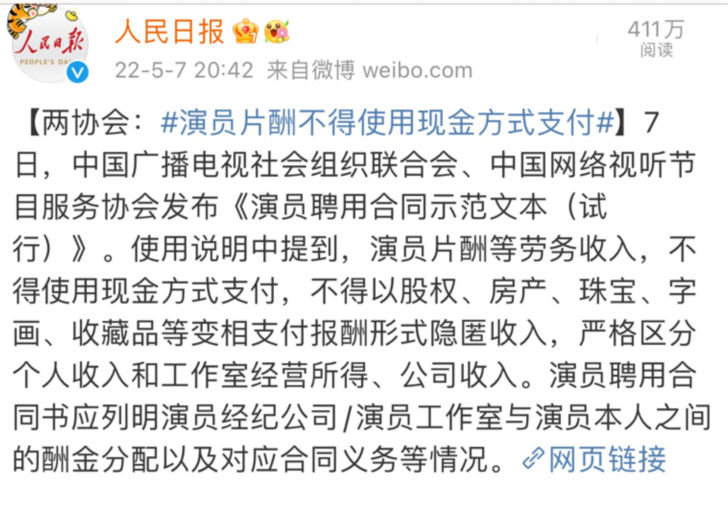 重磅!演員片酬不得使用現(xiàn)金方式支付