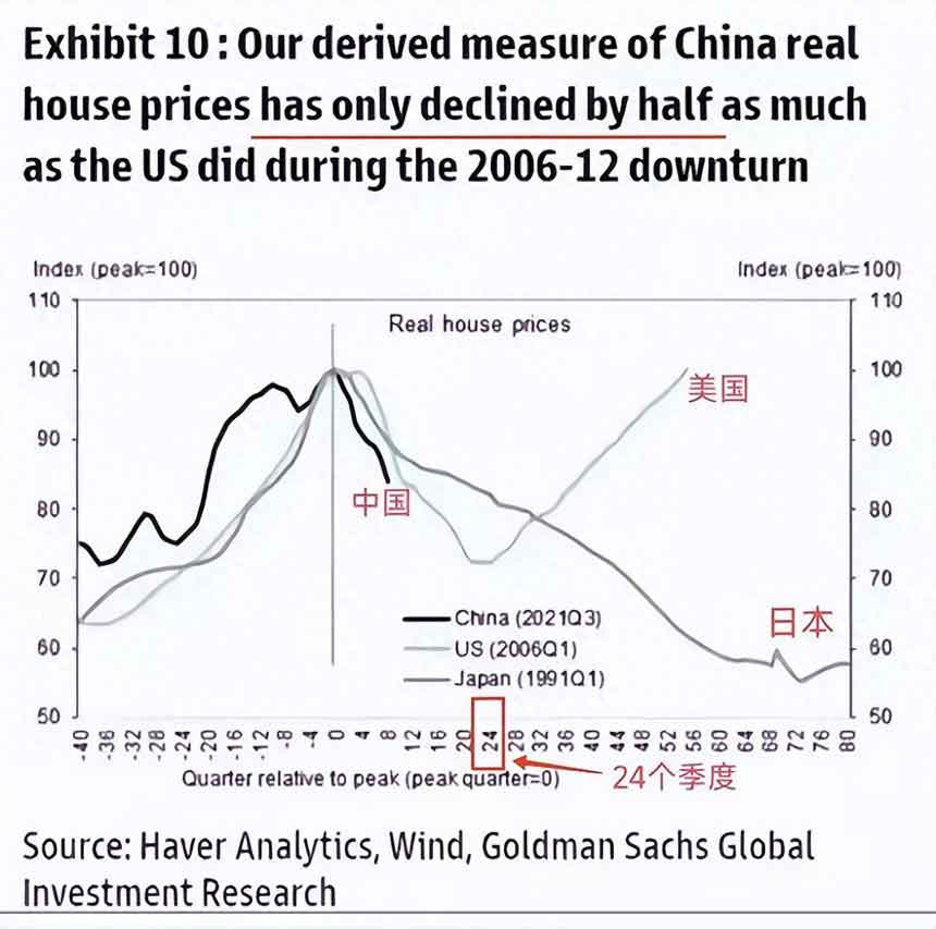 2024年4月流傳的高盛三國房價(jià)對(duì)比圖,把復(fù)雜問題變簡單了。三國房價(jià)見頂后前兩年跌勢(shì)幾乎重合,但第三四年開始分叉:美國用3年反彈,日本跌了17年才穩(wěn)住。如今中國正站在見頂后的第四...
