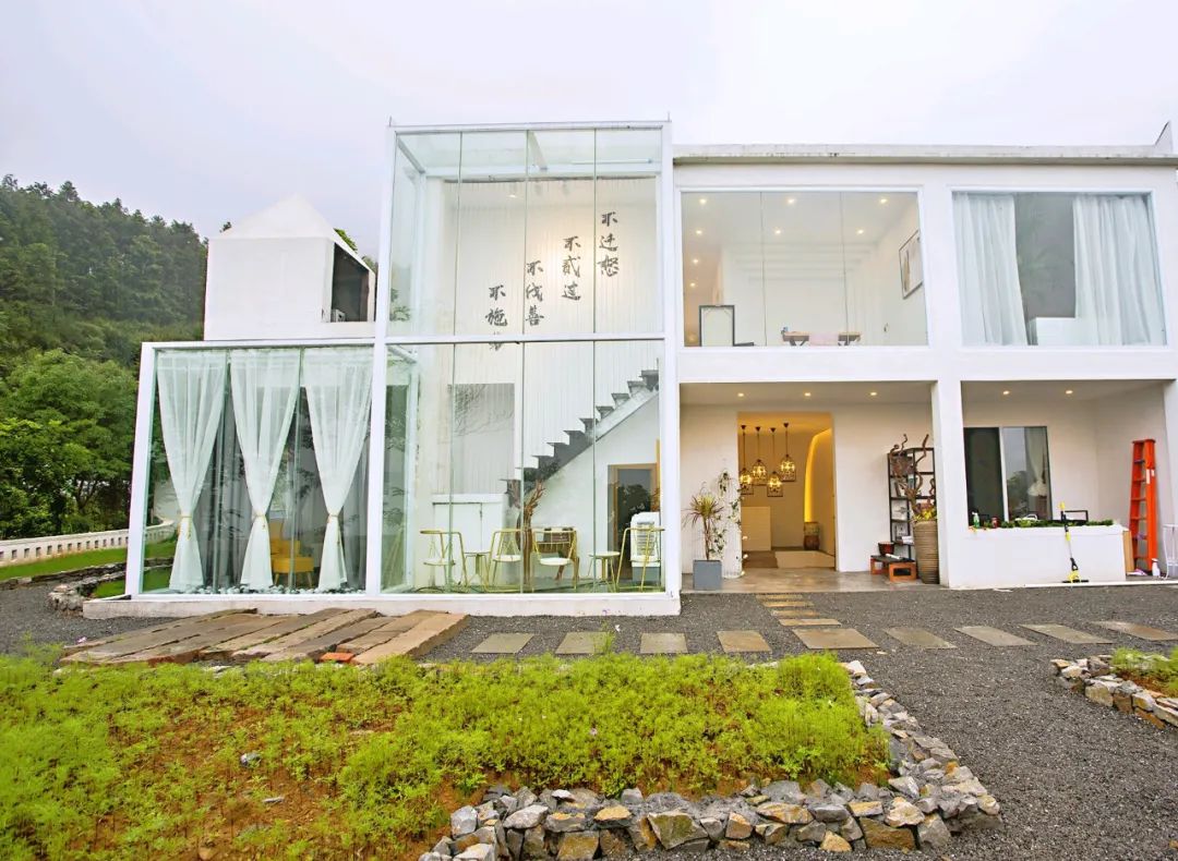 重慶萬(wàn)盛不貳山舍民宿位于黑山谷景區(qū)附近,白色主色調(diào),現(xiàn)代簡(jiǎn)約的風(fēng)格,配上青山...