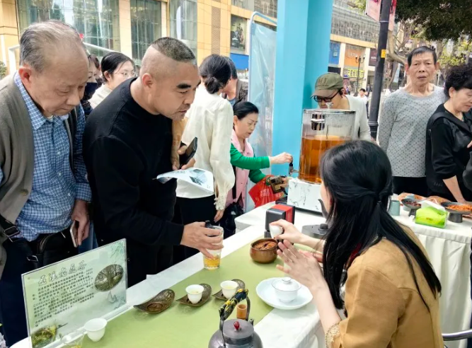 為了讓市民們馬上喝到香氣四溢的老鷹茶,工作人員還現(xiàn)場為廣大市民泡上了一泡老鷹茶,濃郁的香味、透明的茶湯,讓人沉醉在茶水帶來的舒適和愜意里。