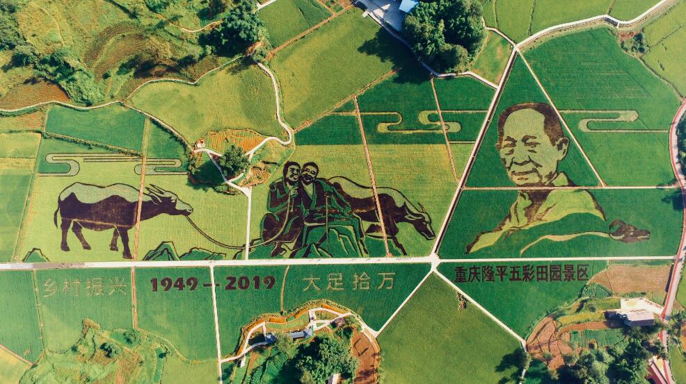 每到金秋,大足區(qū)拾萬(wàn)鎮(zhèn)“隆平五彩田園”人頭攢動(dòng)。各色彩色水稻勾畫(huà)一幅幅五彩斑斕的巨幅畫(huà)。當(dāng)?shù)氐霓r(nóng)民不僅有了水稻的種植收入,也靠這些彩稻吃上了旅游飯,日子過(guò)得紅紅火火。