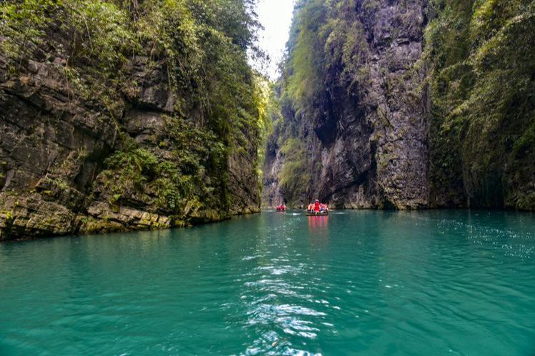 青龍谷,是阿依河側(cè)畔一個重要的打卡地,這里的峽谷高300米,長1600米,蜿蜒曲折,峽谷口就像一條巨大的青龍一樣。峽谷中一條巖壁浮雕,龍身擺舞,龍爪張揚,一條是盤龍騰空座雕被譽為是“雙龍迎客”。谷內(nèi)兩岸翠竹連綿,綠樹成蔭,此外峽谷內(nèi)的一線天、黑洞等也是值得一探究竟。