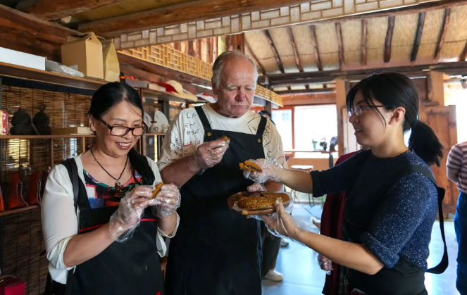 王伶說,鄰居們都很有趣,來自天南地北、各行各業(yè),平時聊聊天、串串門,相處下來很融洽。這個中秋假期,他們還聚在一起做月餅、嘮家常。“新村民”的入駐,也催生了新業(yè)態(tài)。書店、咖啡館、藝術(shù)空間等相繼布局運營,不僅提升了整個村子的顏值和內(nèi)涵,還為新老村民提供了更多休閑好去處。開了一家土窯烘焙店的年輕女孩袁云說:“有時候吃完下午茶,大家還不愿意走,一不小心就聊到了晚上!痹仍谕獍l(fā)展的一些村民也陸續(xù)回到村子,實現(xiàn)顧家、增收兩不誤。村民胡小外開了一家超市,不少商品都是按照旅居客的需求采購回來的。“別看超市不大,東西全著呢。”她說。