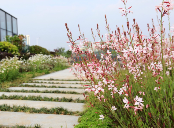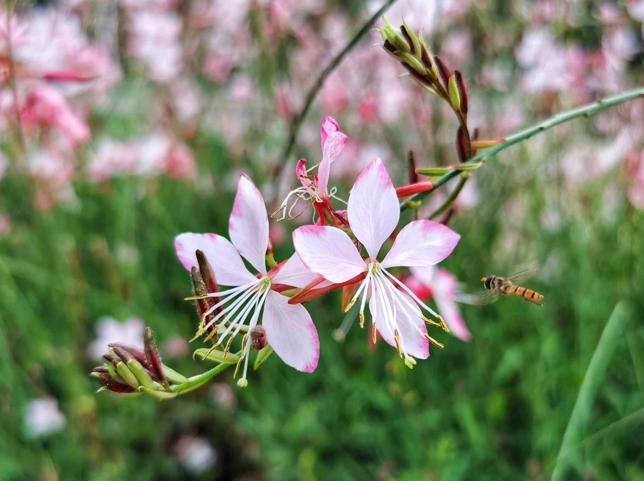 我覺得,其實(shí)山桃草也很有成為下一個(gè)‘網(wǎng)紅’的潛質(zhì),它特別符合中國傳統(tǒng)的審美。你看,它是一節(jié)一節(jié)抽出莖來然后開花的,枝條很纖細(xì)靈動(dòng),現(xiàn)在花還沒有開起來,等到了盛花期,就是一片花海盛景!备┥砜慈ィ灰娨粎矃卜郯咨男』ú戎l飛了出來,向四面八方肆意伸展著,一股蓬勃的生命力就這樣撲到了面前。