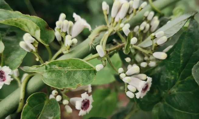 我們今天要為大家介紹這一種在農(nóng)村的大山中會(huì)生長(zhǎng)的一種野草,當(dāng)?shù)氐霓r(nóng)民都將這種野生植物稱之為雞屎藤。這種野生植物,你遠(yuǎn)遠(yuǎn)地觀看會(huì)覺得非常的美觀,但是如果你把它扯碎了那你就會(huì)聞到跟雞屎有一拼的,相信農(nóng)民朋友們?cè)趺匆膊粫?huì)想到這種在農(nóng)村里不值錢的玩意在城市當(dāng)中的價(jià)值竟然比肉還貴。到了每年的8月份,它就會(huì)開出外面灰白色,內(nèi)心為紫色的小花。而且它的花的形狀非常有特點(diǎn),像一個(gè)筆筒的形狀。到了10月份,它就會(huì)結(jié)出淡黃色的圓球果子。