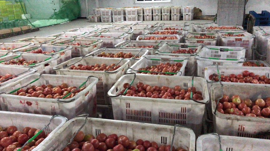 ▲在何淑玲家的臨時(shí)倉庫里,一箱箱成熟番茄堆在一起。如果不能及時(shí)銷售出去,何淑玲一家一年的辛苦就白費(fèi)了。