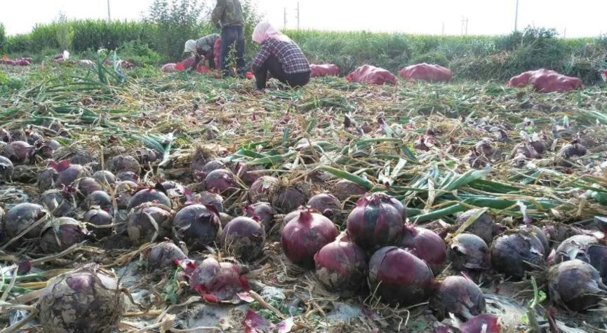 ▲紫皮洋蔥是云南省建水縣不少農(nóng)戶種植的主要作物之一,若沒有及時(shí)銷售出去,就只能爛在地里。