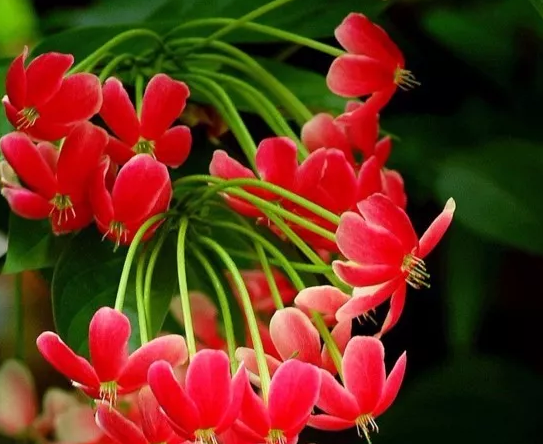 使君子,別名:舀求子、史君子、四君子,拉丁文名:Quisqualis indica L.使君子科、使君子屬攀援狀灌木,高2-8米;小枝被棕黃色短柔毛。葉對生或近對生,葉片膜質,卵形或橢圓形,先端短漸尖,基部鈍圓,表面無毛,背面有時疏被棕色柔毛,幼時密生銹色柔毛。頂生穗狀花序,組成傘房花序式;苞片卵形至線狀披針形,被毛;具明顯的銳棱角5條,成熟時外果皮脆薄,呈青黑色或栗色;白色,圓柱狀紡錘形。花期初夏,果期秋末。種子為中藥中最有效的驅蛔藥之一,對小兒寄生蛔蟲癥療效尤著。