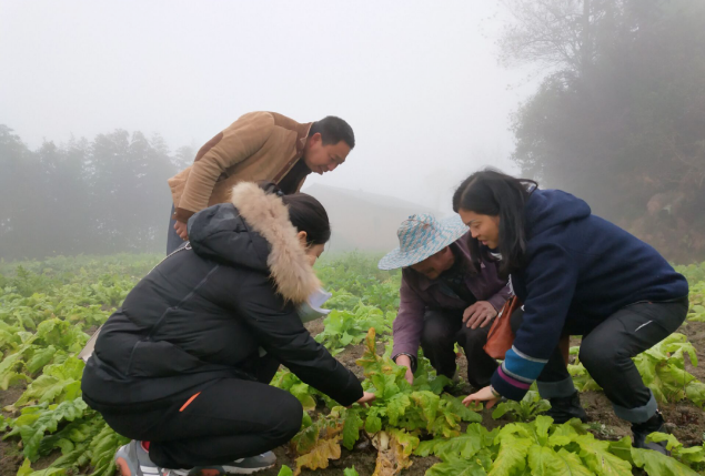 ▲農(nóng)業(yè)農(nóng)村委專家在草蔸蘿卜種植一線走訪指導(dǎo)