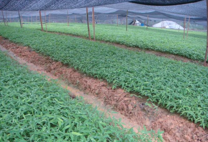 重慶御竹農(nóng)業(yè)科技發(fā)展有限公司在海拔700 m的桐梓鎮(zhèn)長(zhǎng)征村投資600萬元,建設(shè)竹子組培苗生產(chǎn)車間600 m2,溫室大棚5 000 m2,蔭棚1萬m2,露地苗圃6.67 hm2。代氏水果竹繁殖以組培、扦插、高位壓條育苗方式為主,每年生產(chǎn)布袋苗60萬~100萬袋。綠竹以組培、扦插、高位壓條育苗方式為主,每年生產(chǎn)布袋苗100萬~130萬袋。毛竹以播種育苗、小母竹移栽為主,每年生產(chǎn)布袋苗150萬~200萬袋,小母竹苗13萬株。
