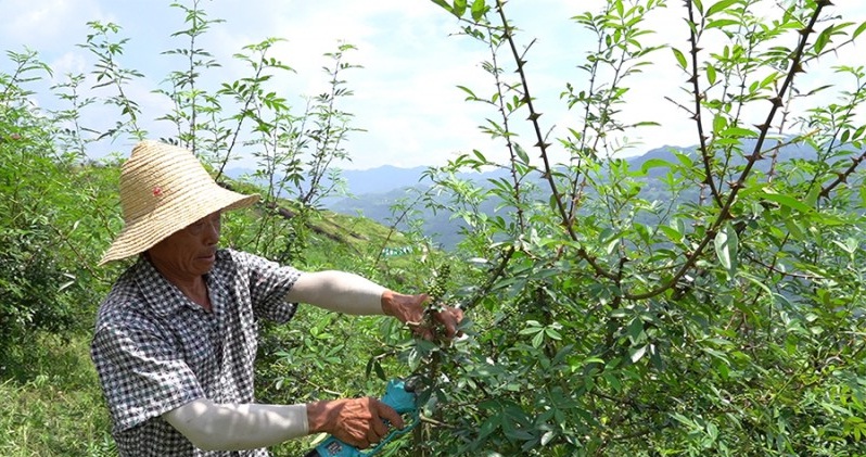 村民王永祥在花椒基地采收花椒。新華網(wǎng) 馬天龍 攝