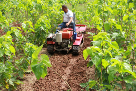 工人正在桑園為套作榨菜整地