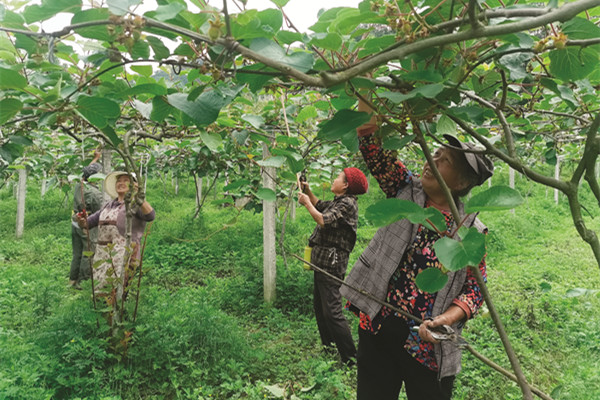 龐益海介紹,這個獼猴桃基地是由當(dāng)?shù)剞r(nóng)戶抱團建立的合作社所承包的,采取“合作社+基地+農(nóng)戶”的農(nóng)業(yè)產(chǎn)業(yè)化經(jīng)營機制,除了土地入股金和年底分紅,農(nóng)戶們還可以通過務(wù)工實現(xiàn)增收。