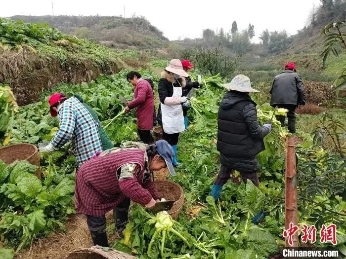 自今年1月份開始,“村村旺”青菜頭訂單農(nóng)業(yè)迎來砍收季,這正是青菜頭交貨時的熱鬧場景。