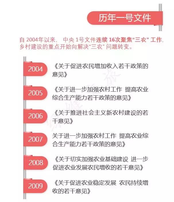 以下梳理近年來中央 1號文件的政策導(dǎo)向與要點,以期能更好的了解國家關(guān)于鄉(xiāng)村發(fā)展的推進路徑。