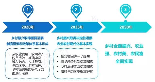 2018年一號文件提出分2020年、 2035年、2050年三個階段實施鄉(xiāng)村振興戰(zhàn)略, 并明確了每個階段需要達成的成效。