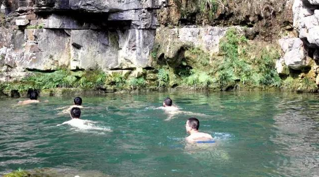 深潭長的有幾百米,短的也有幾十米,水深處不知有多少米深,淺處有齊腰深的,形成天然的游泳池,在這青山綠水中耍水嬉戲,簡直要太帶感了。