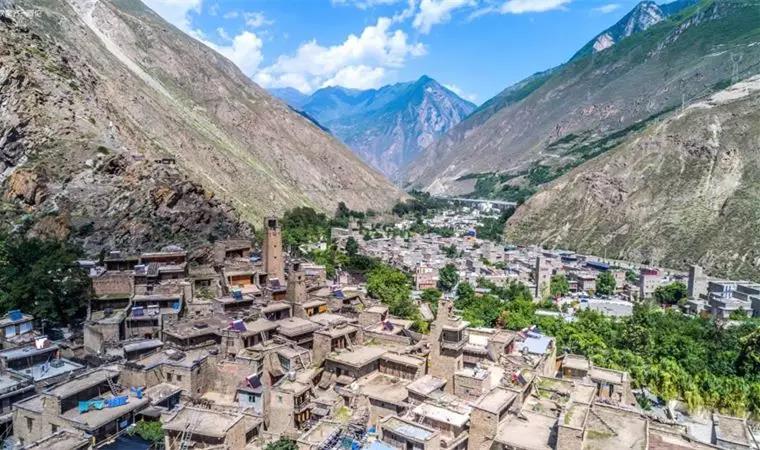 【桃坪羌寨】寨內(nèi)一片黃褐色的石屋順陡峭的山勢依坡上壘,其間碉堡林立,被稱為最神秘的“東方古堡”。