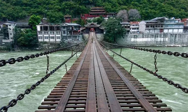 【瀘定橋】“中國紅色經(jīng)典第一橋”又稱鐵索橋,兩岸橋頭堡為木結(jié)構(gòu)古建筑,風貌獨特為國內(nèi)獨有。