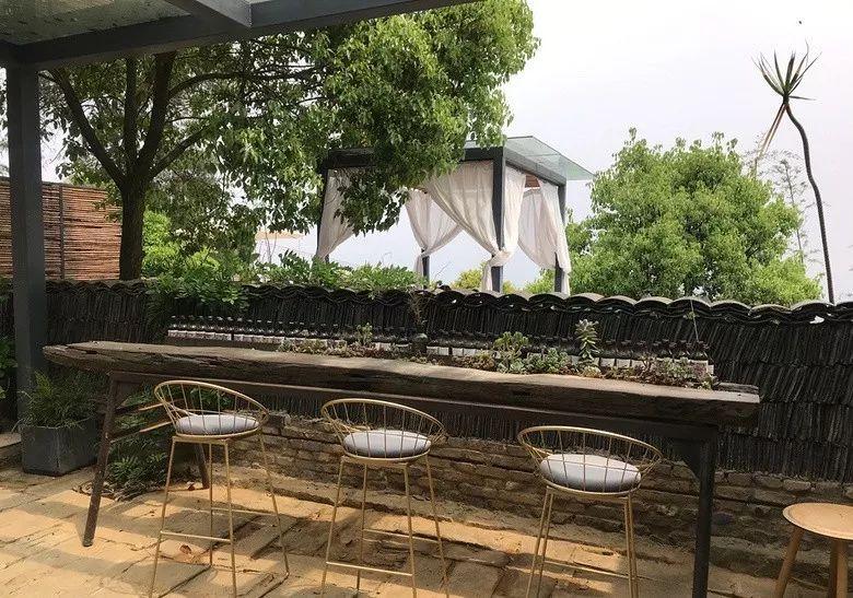 外邊是一個(gè)小院子,綠植彩燈白天已經(jīng)很美,晚上更是夢(mèng)幻桌子是老舊木門拼接起來的凳子大多也是手作坐在露臺(tái)邊,遠(yuǎn)眺對(duì)面的青山俯瞰美麗的鮮花碧草,絕對(duì)是難得的享受