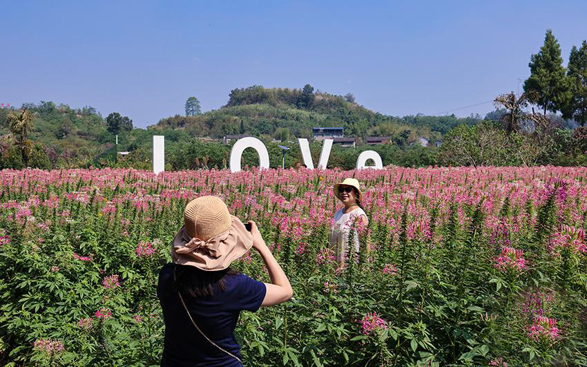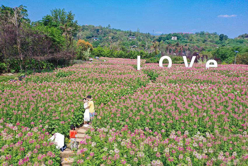 10月2日,在沙坪壩區(qū)鳳凰花海景區(qū),50余萬株醉蝶花競相盛放,呈現(xiàn)出一幅姹紫嫣紅的錦繡畫卷,大批游客正在這里拍照打卡,沉浸其中體驗賞花樂趣。
