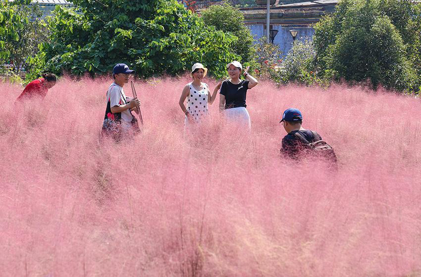 此外,景區(qū)的粉黛亂子草也迎來最佳觀賞季,10余畝草木迎風(fēng)招展,層層疊疊的粉色波浪如夢如幻,美不勝收。