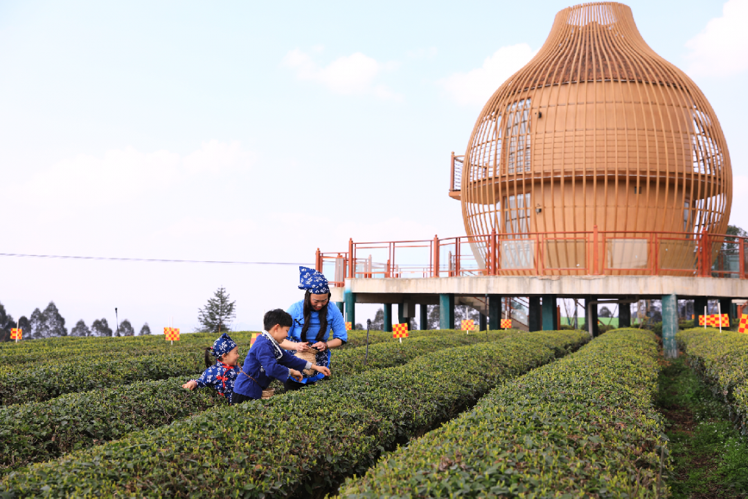行走在枝繁葉茂的茶垅間只見嬌嫩的綠芽青翠如玉空氣中彌漫著淡淡茶香令人心曠神怡