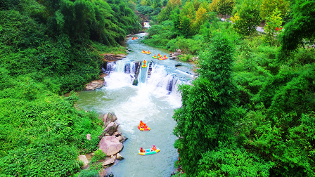 獨(dú)特蓮花瀑布飛越漂讓你享受漂流中接連不斷的挑戰(zhàn)尖叫聲、歡笑聲在峽谷此起彼伏