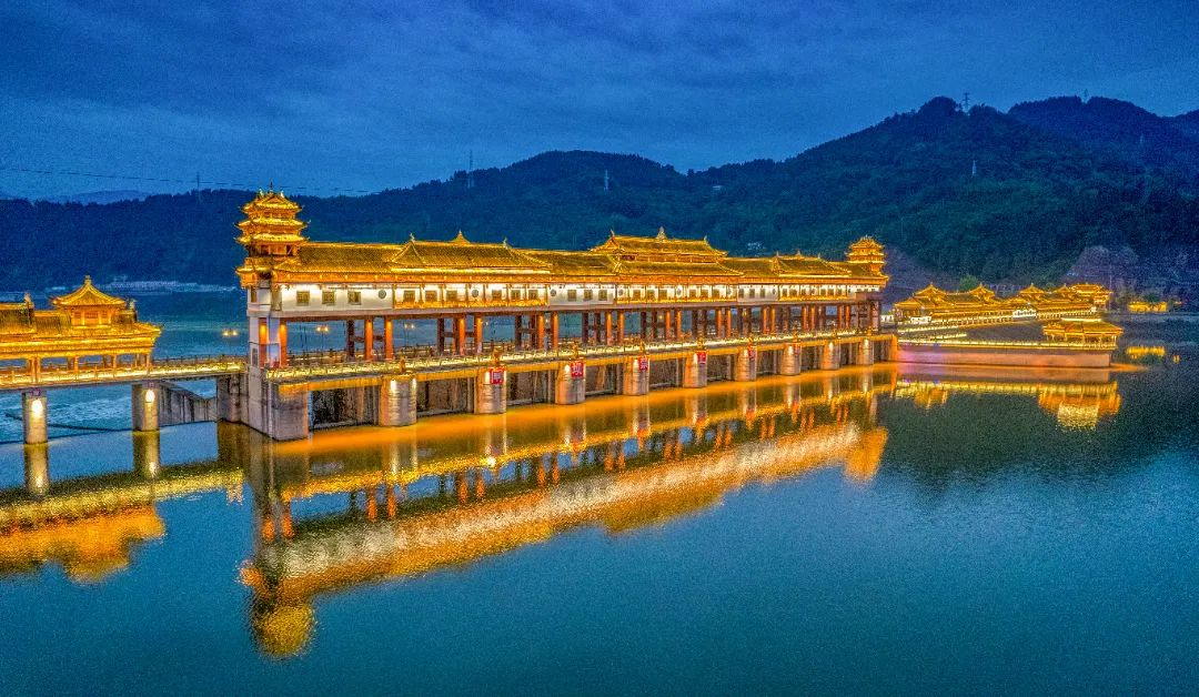 是一座既具功能性又有觀賞性的記憶之廊、藝術(shù)之橋圖片風(fēng)雨廊橋雖為新修建筑物卻薈萃了千年開州厚重的底蘊是開州區(qū)的一個標(biāo)志性建筑