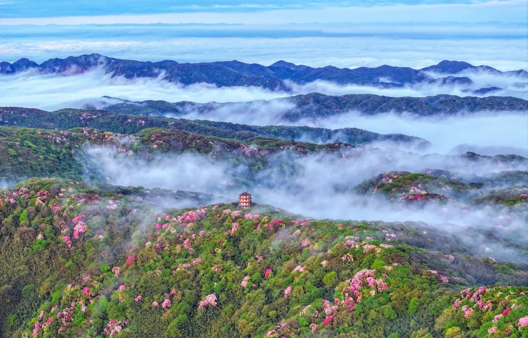 五一假期雖然已結(jié)束但金佛山的美仍在繼續(xù)!云海流淌,似水似瀑和盛放的杜鵑花遙相呼應(yīng)